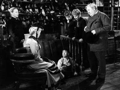 Kaye's counterpart is Joey Walsh, a child actor who plays Hans' young ward Peter (at least I guess he's a ward, the movie never really explains). Just as Hans is the child in the grown man's body, Peter is the adult in a child's boy. It's his job to explain to Hans why he has to focus on the business of cobbling shoes as well as making fairy tales. He is the one who stays by Hans' side and tries to protect him from the humiliations that others might heap on him. And Peter is the one who understands where Hans' ill-fated attraction to a married ballerina will lead him. Joey Walsh is fine in the role and the moment where Hans tries to send his friend away in a fit of temper is surprisingly sad.